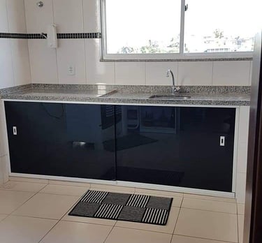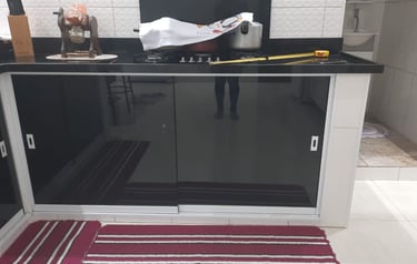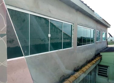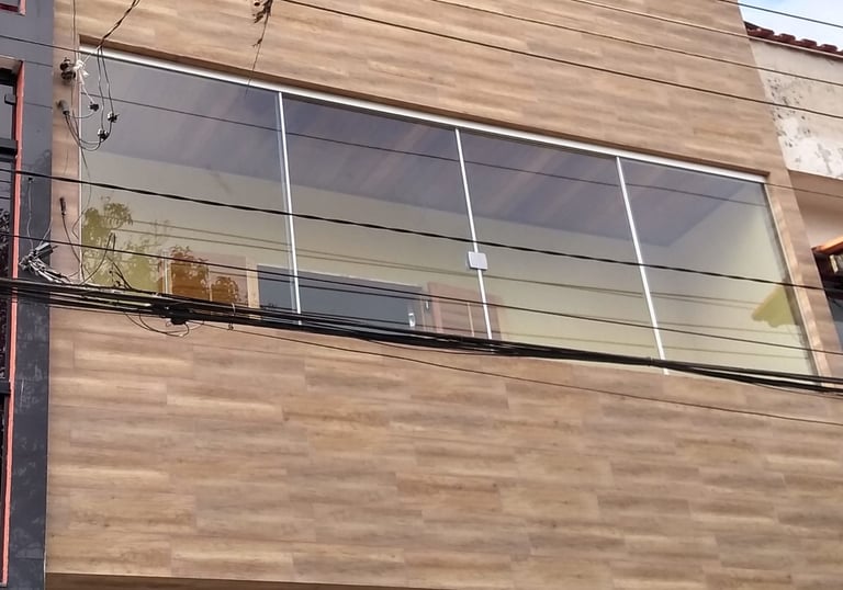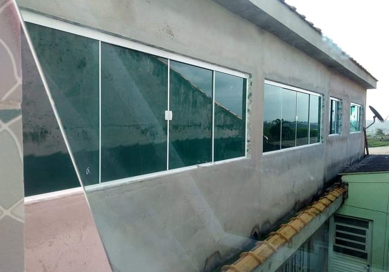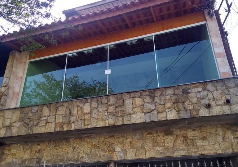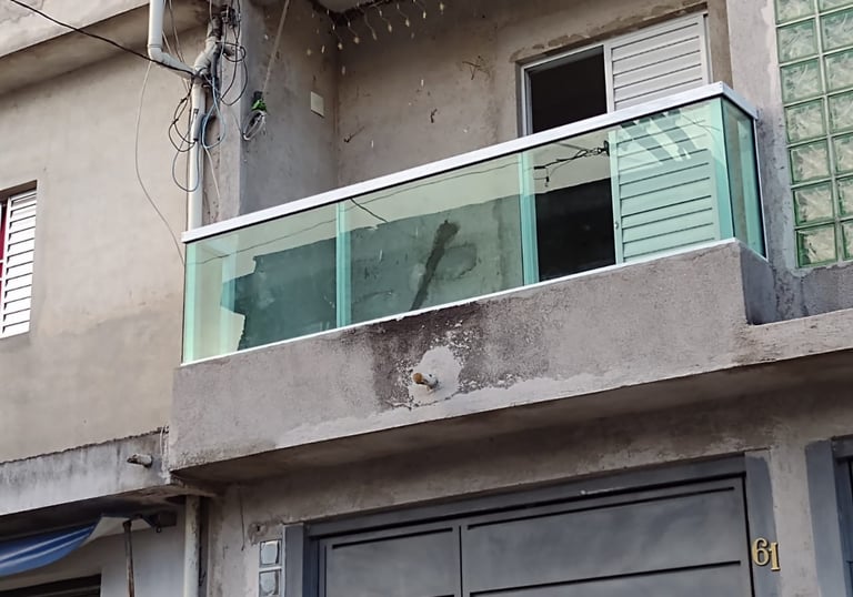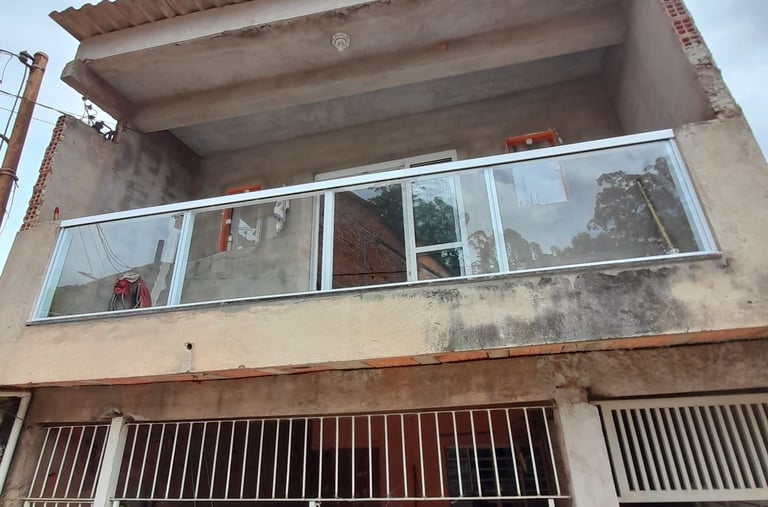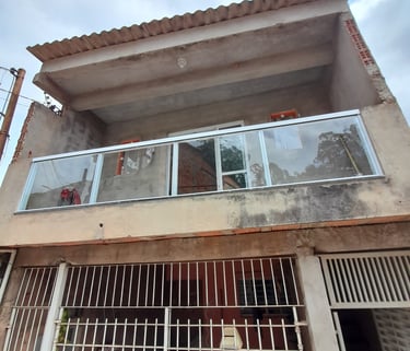 Guarda corpo e fechamentos de pia em vidro temperado 8mm! Alumínio linha pesada reforçado, com pintura eletrostática.