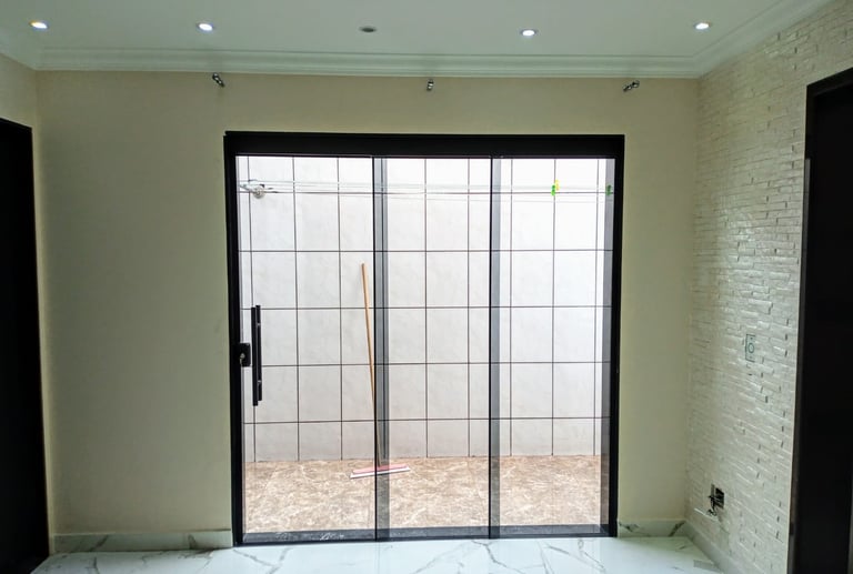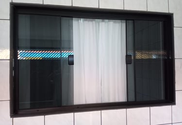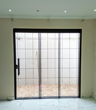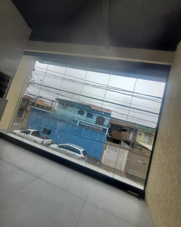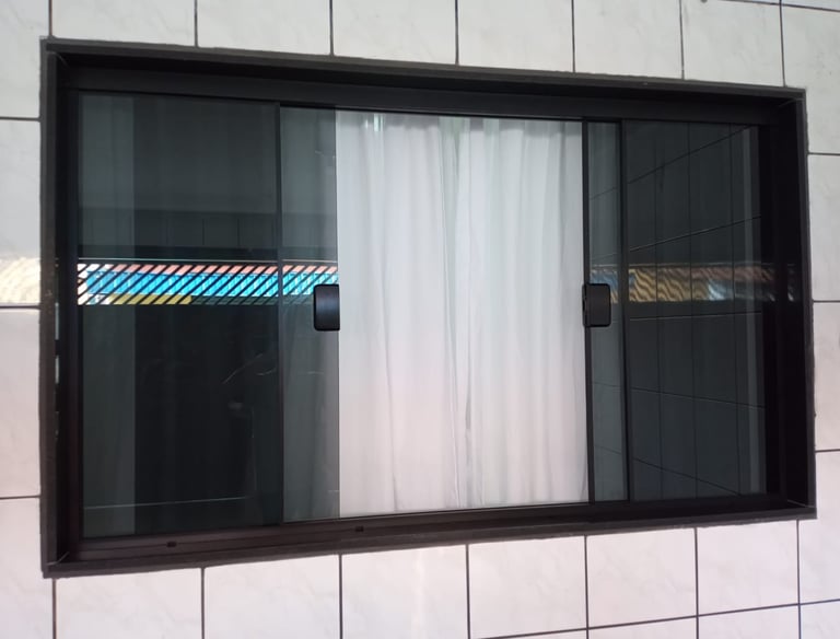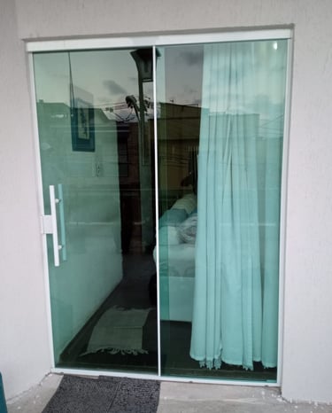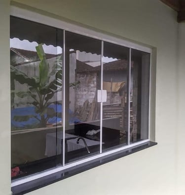 Janela em vidro temperado 8mm! Alumínio linha pesada reforçado, com pintura eletrostática. Sistema bate fecha com fechadura!
