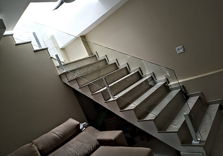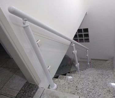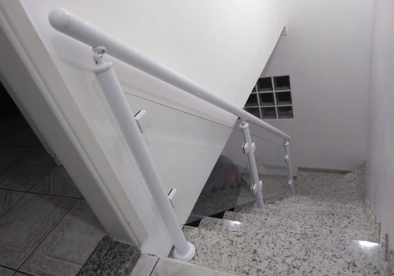 Corrimão em vidro temperado 8mm, alumínio linha pesada reforçado, com pintura eletrostática!